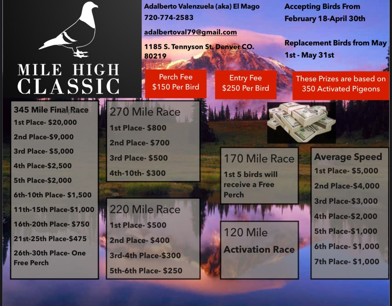 El Mile High Classic se ha consolidado como una de las pruebas de resistencia más importantes en la región de Colorado. Bajo la dirección de Adalberto Valenzuela, esta competencia ofrece a los colombófilos la oportunidad de probar a sus ejemplares en condiciones de altura y clima desafiantes.